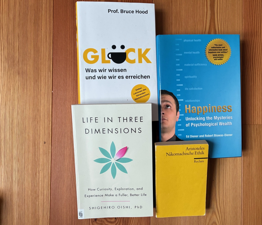 Für das dritte Bein des guten Lebens verweisen wir auf ein ziemlich cooles neues Buch aus den Staaten. Es stammt vom japanisch-amerikanischen Psychologen Shigehiro Oishi, über dessen Forschung ich mal während einer Konferenz gestolpert bin. Ich mochte seinen Humor und seine originelle Art, sich neue Studien und Experimente auszudenken. Sein Buch heißt jedenfalls Life in Three Dimensions: How Curiosity, Exploration, and Experience Make a Fuller, Better Life.